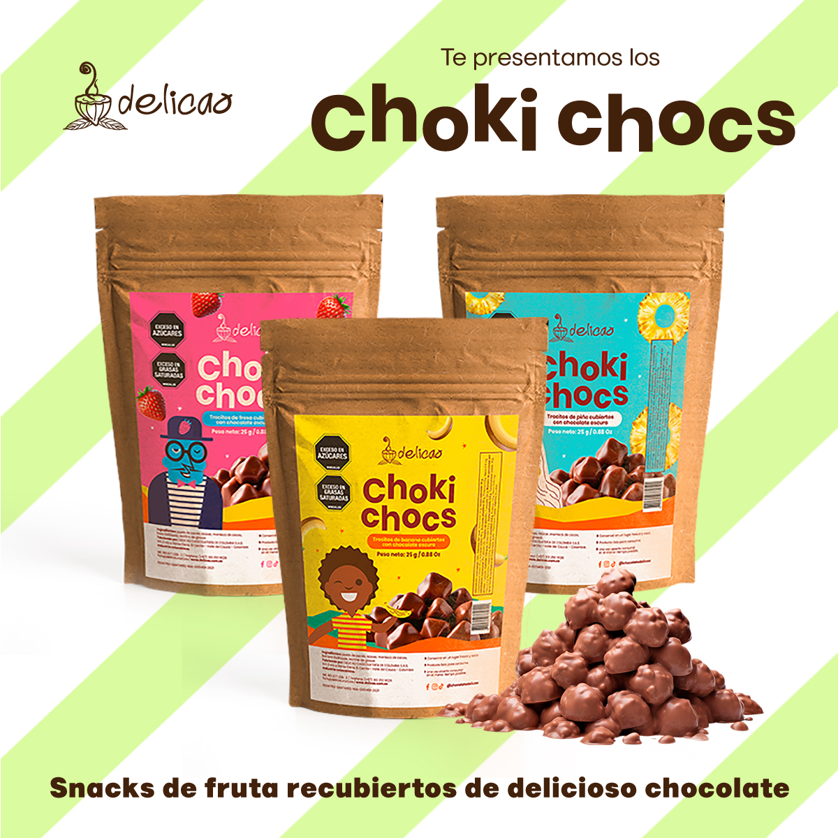 Choki Chocs Fresa: El Snack Saludable, Refrescante, Energizante y Perfecto para la Lonchera de los Niños. Donde la Dulzura de la Fresa se Encuentra con la Intensidad del Cacao