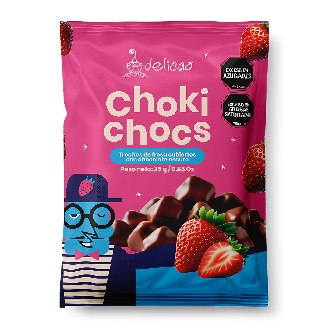 ¡Haz de la merienda un momento de placer inteligente, refrescante y lleno de sabor con Choki Chocs Fresa!
